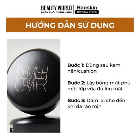 Sử dụng sản phẩm sau khi đã sử dụng kem nền/ cushion. Lấy bông mút phủ một lớp vừa phải lên toàn bộ bề mặt da.