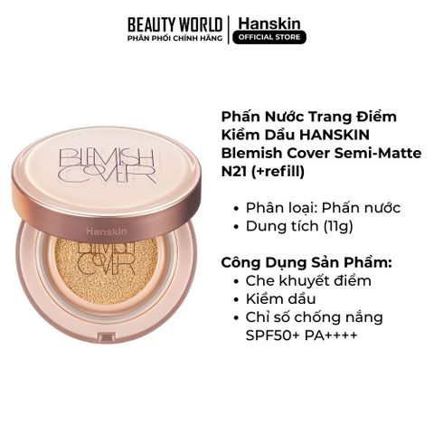 Phấn Nước Trang Điểm Hanskin Blemish Cover Conceal Cushion Semi-Matte N21(+Refill)